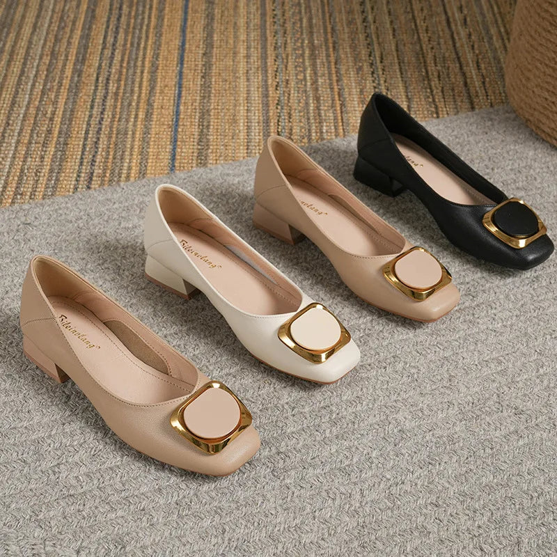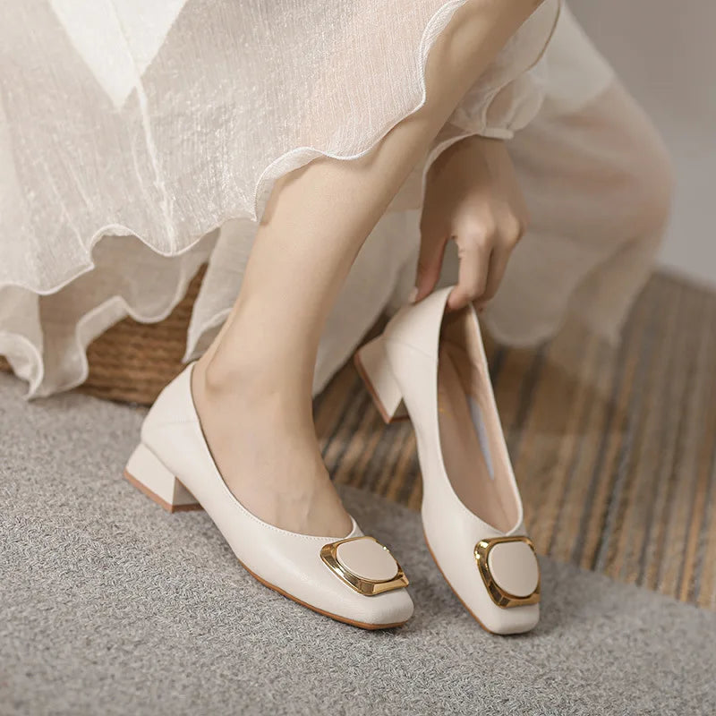 Elegant Beige Mary Janes Women's Loafer High Heel Slip-On Pumps for Office & Career