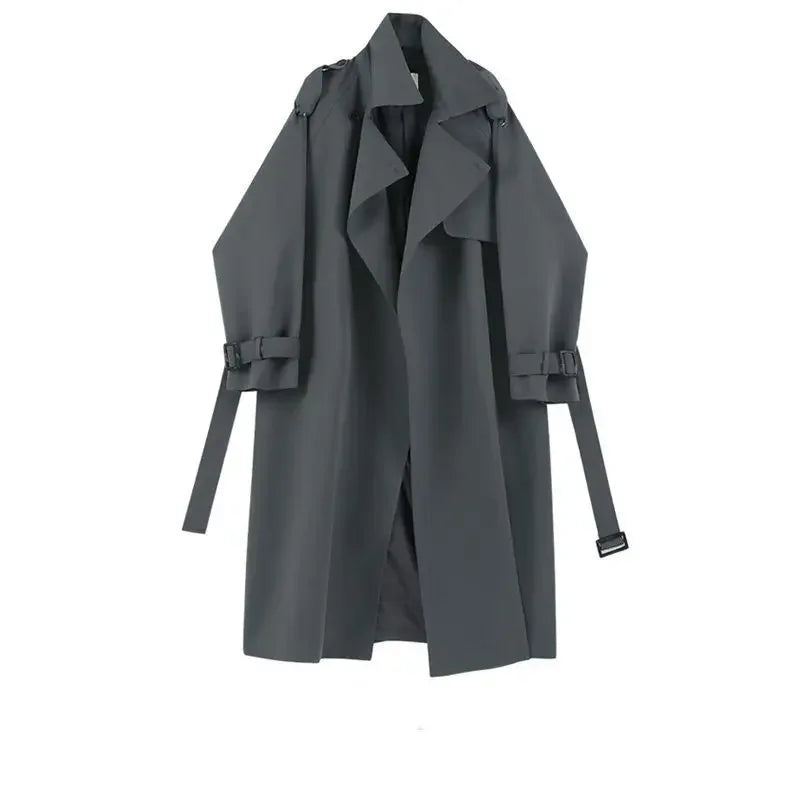 Women Long Trench Coat Classic Lapel Belted Sleeve Casual Street Fashion Outerwear